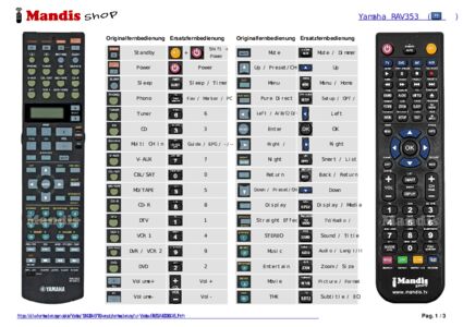 Im Folgenden zeigen wir Ihnen die Zuordnung jedes einzelnen Knopfes der Originalfernbedienung zu der Taste, die dieselbe Funktion auf der Ersatzfernbedienung ausführt. In einigen Fällen müssen Sie möglicherweise die UMSCHALT-Taste drücken, bevor Sie eine andere Taste drücken, um bestimmte Aktionen auszuführen. Diese zusätzlichen Funktionen werden oft wenig genutzt und dienen dazu, das Verständnis der Ersatzfernbedienung zu erleichtern oder weil die Originalfernbedienung mehr Tasten hat als das entsprechende Modell.