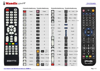 Ein Dokument ist enthalten, um die Verwendung der neuen Fernbedienung zu erleichtern, indem es die Tastenbelegung zeigt.