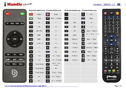Ein Dokument ist enthalten, um die Verwendung der neuen Fernbedienung zu erleichtern, indem es die Tastenbelegung zeigt.