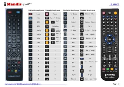Ein Dokument ist enthalten, um die Verwendung der neuen Fernbedienung zu erleichtern, indem es die Tastenbelegung zeigt.