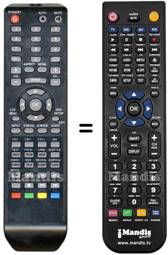 Below, we will show you the correspondence between each button on the original remote control and the button that performs the same function on the replacement remote control. In some cases, you may need to press the SHIFT key before pressing another button to perform certain actions. These additional functions are often not widely used and are included to facilitate understanding of the replacement remote control, or because the original remote control has more buttons than its equivalent.