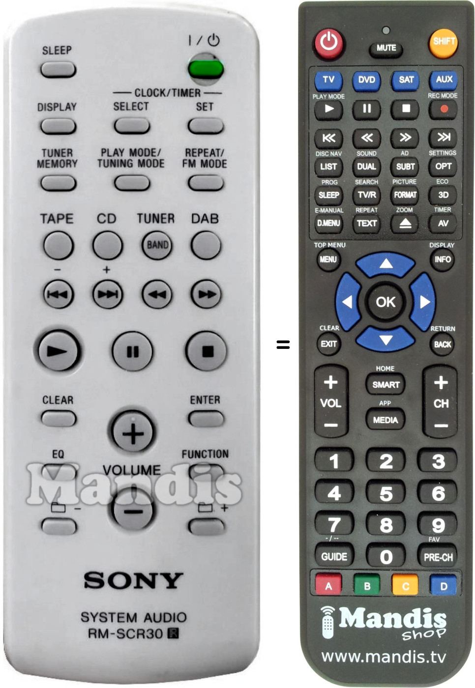 Below, we will show you the correspondence between each button on the original remote control and the button that performs the same function on the replacement remote control. In some cases, you may need to press the SHIFT key before pressing another button to perform certain actions. These additional functions are often not widely used and are included to facilitate understanding of the replacement remote control, or because the original remote control has more buttons than its equivalent.