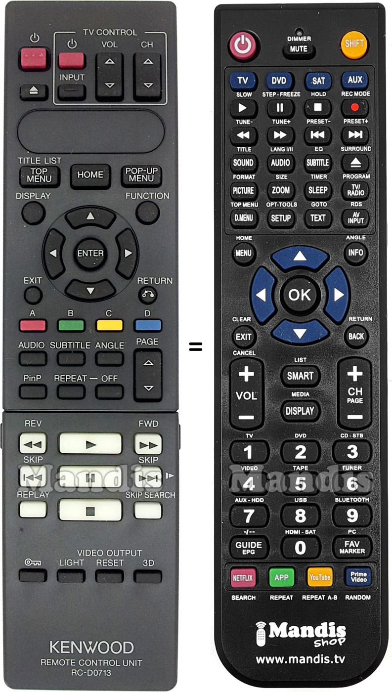 This remote control fully replaces your RC-D0713 and offers all the functions of the original.