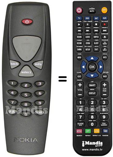 Below, we will show you the correspondence between each button on the original remote control and the button that performs the same function on the replacement remote control. In some cases, you may need to press the SHIFT key before pressing another button to perform certain actions. These additional functions are often not widely used and are included to facilitate understanding of the replacement remote control, or because the original remote control has more buttons than its equivalent.