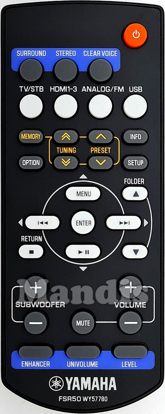Replacement remote controls that replace in all its functions the remote YAMAHA FSR50 (WY577800):