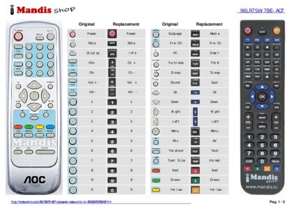 A document is included to help you use the new remote control easily, showing the button correspondence.