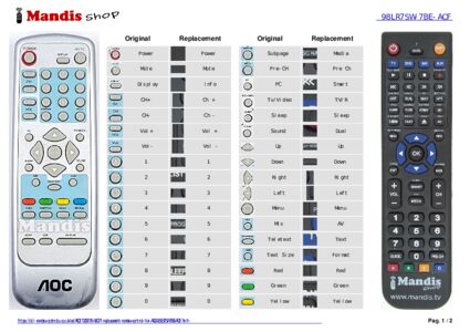 Below, we will show you the correspondence between each button on the original remote control and the button that performs the same function on the replacement remote control. In some cases, you may need to press the SHIFT key before pressing another button to perform certain actions. These additional functions are often not widely used and are included to facilitate understanding of the replacement remote control, or because the original remote control has more buttons than its equivalent.