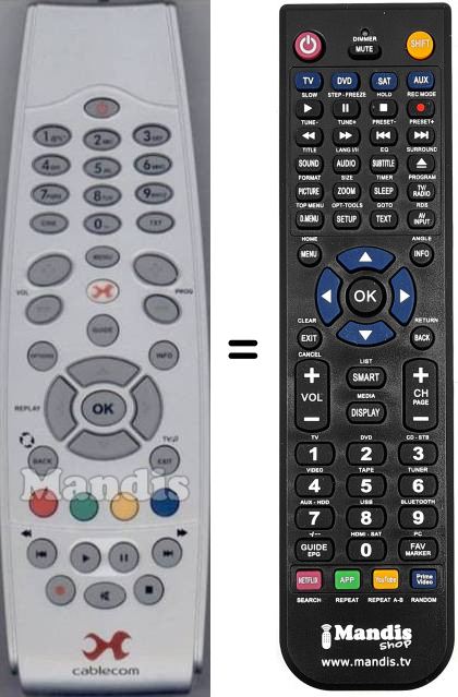Remote control to replace the original Cablecom (RC39870R00) and all its functions.