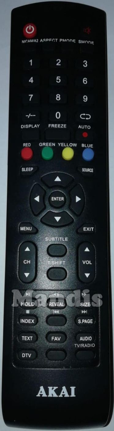 original remote control AKTV410TSFHD used for televisions for the brand Akai. This is an original remote control.