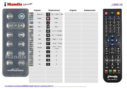 Below, we will show you the correspondence between each button on the original remote control and the button that performs the same function on the replacement remote control. In some cases, you may need to press the SHIFT key before pressing another button to perform certain actions. These additional functions are often not widely used and are included to facilitate understanding of the replacement remote control, or because the original remote control has more buttons than its equivalent.