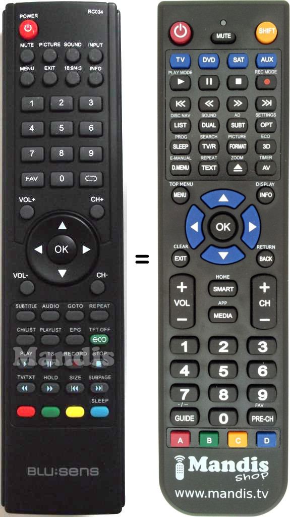 Home > Brands > Remote controls Blusens > Remote control for BLUSENS RC034