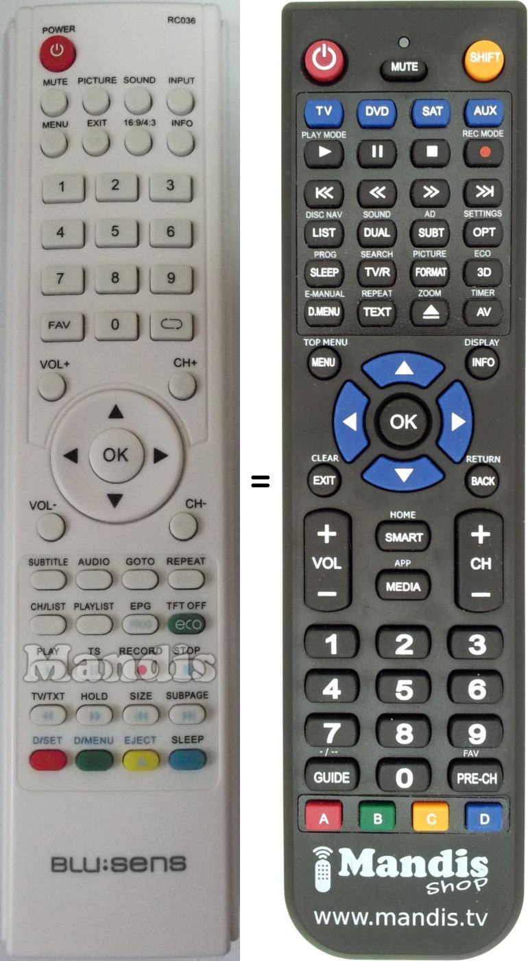 Home > Brands > Remote controls Blusens > Remote control for BLUSENS RC036-2