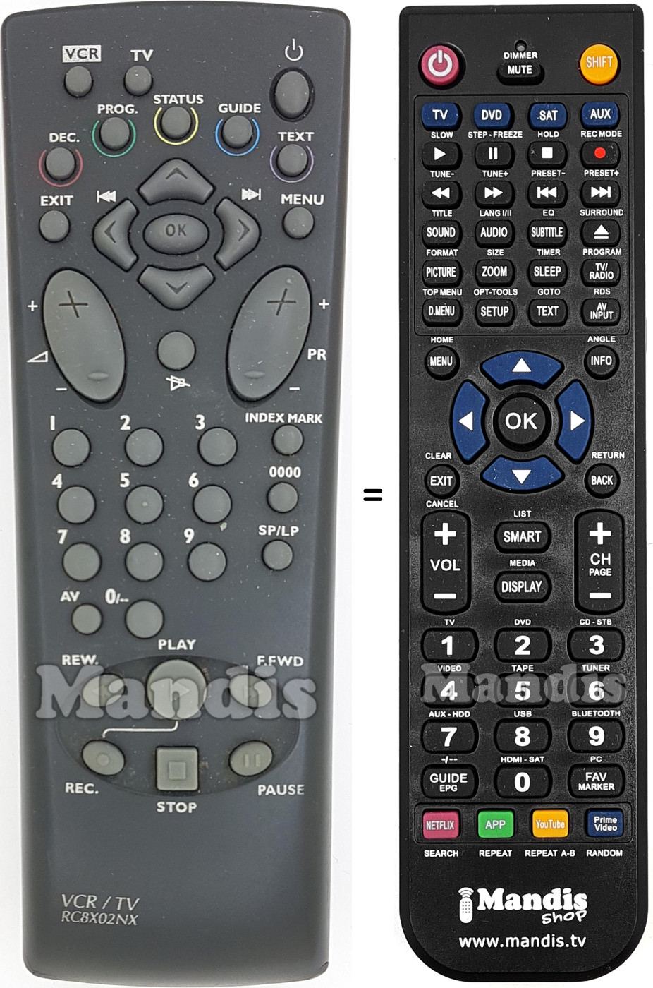Below, we will show you the correspondence between each button on the original remote control and the button that performs the same function on the replacement remote control. In some cases, you may need to press the SHIFT key before pressing another button to perform certain actions. These additional functions are often not widely used and are included to facilitate understanding of the replacement remote control, or because the original remote control has more buttons than its equivalent.