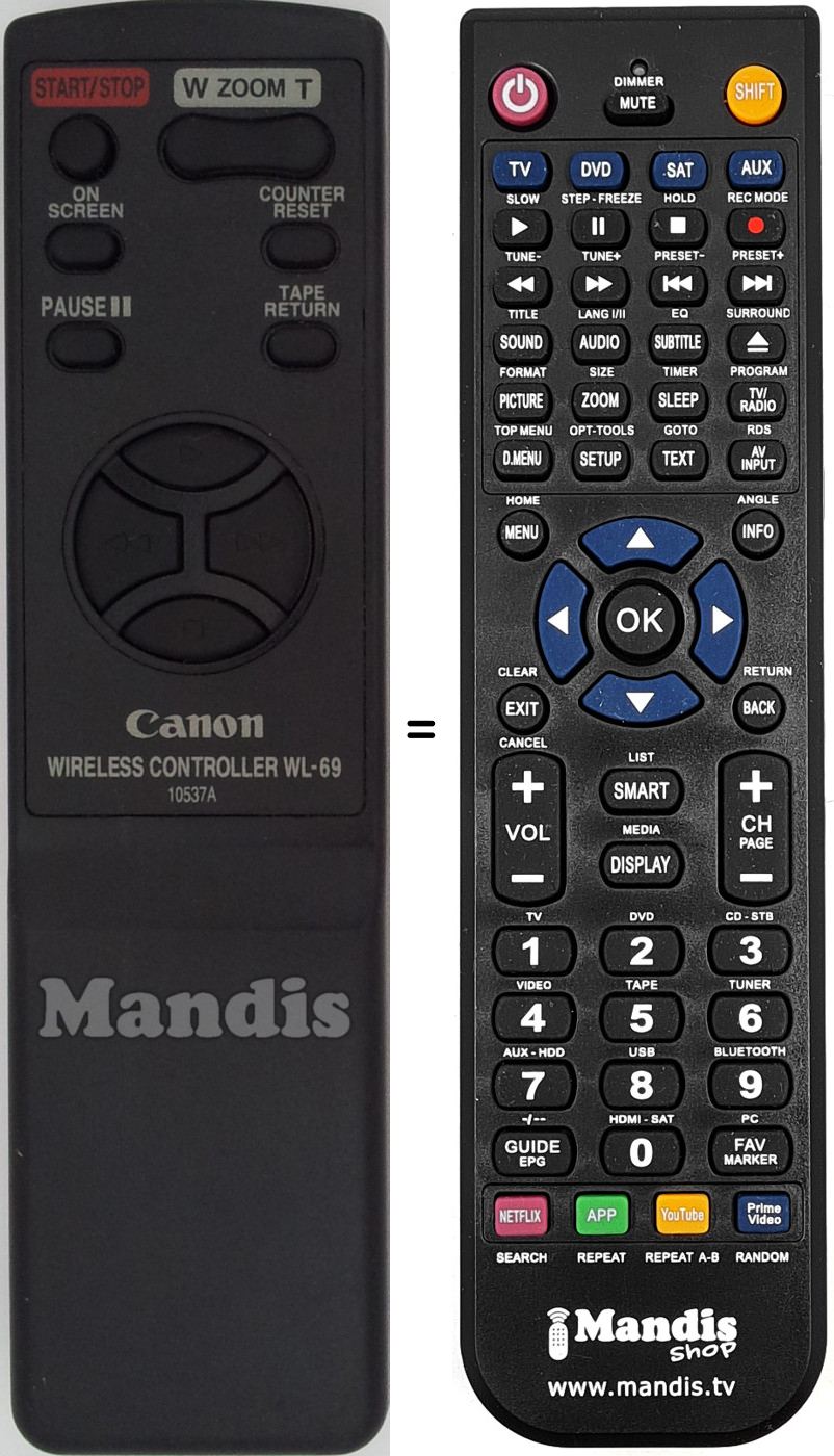Remote control for CANON 10537A (WL-69)