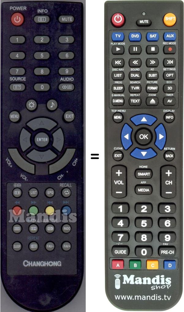 This remote control fully replaces your Changhong004 and offers all the functions of the original.