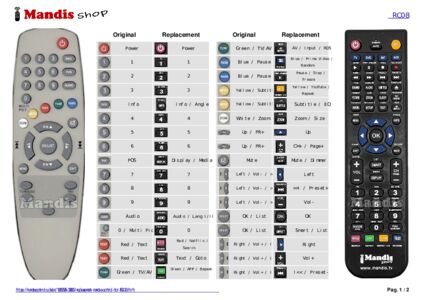 Below, we will show you the correspondence between each button on the original remote control and the button that performs the same function on the replacement remote control. In some cases, you may need to press the SHIFT key before pressing another button to perform certain actions. These additional functions are often not widely used and are included to facilitate understanding of the replacement remote control, or because the original remote control has more buttons than its equivalent.