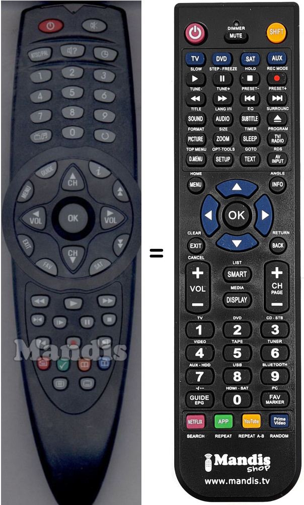 I couldn't find an original replacement remote control for my AV amplifier, until I found Mandis! The remote works perfectly straight out of the box with no set up needed! Highly recommended and extremely thankful to Mandis for having these available. Delivery only took 1 week to United Kingdom