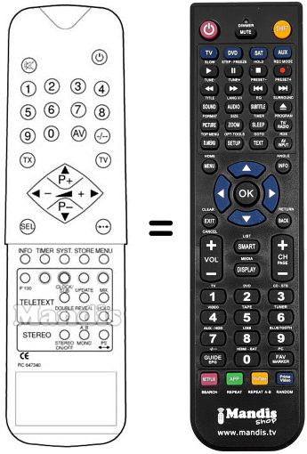 Remote control to replace the original RC 647340 and all its functions.