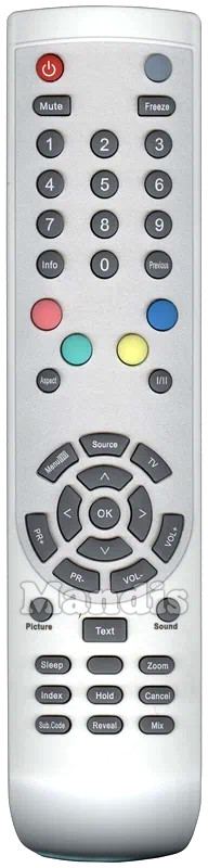 Power, , Mute, Freeze, 1, 2, 3, 4, 5, 6, 7, 8, 9, 0, Info, Previous, Red, Green, Yellow, Blue, Aspect, I/II, Menu, Source, TV, Up, Left, OK, Right, Down, PR+, PR-, Vol-, Vol+, Picture, Sound, Text, Sleep, , Zoom, Index, Hold, Cancel, Sub.Code, Reveal, Mix