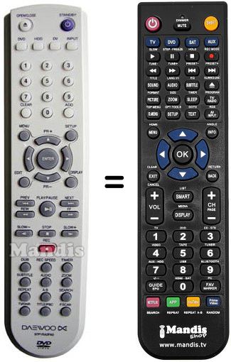 Remote control to replace the original and all its functions.