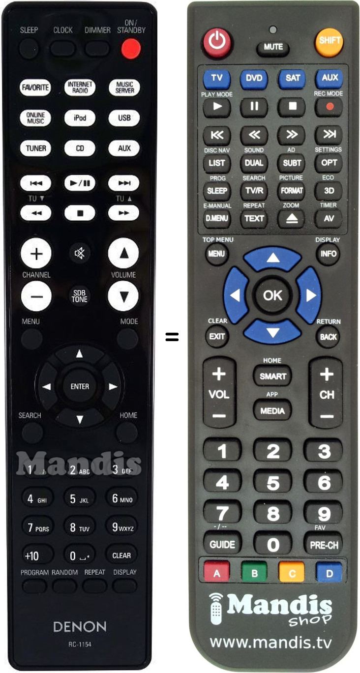 This remote control fully replaces your RC-1154 (30701000600AD) and offers all the functions of the original.