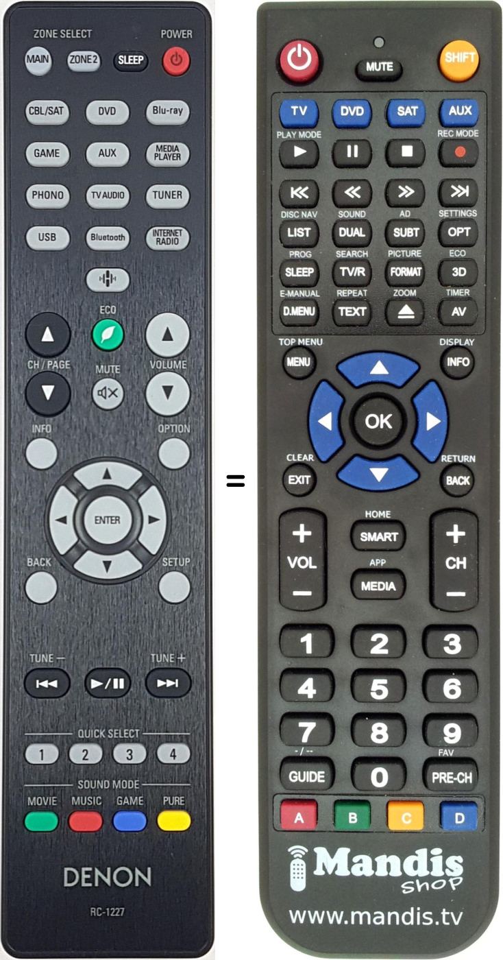 Replacement remote control Denon Denon-RC1110Replacement remote control Denon Denon-RC1110Available in stock22.73 € (VAT included)DenonFor DVD-A1, DVD-A1UDCIReplacement remote control Denon RC-1161Replacement remote control Denon RC-1161Available in stock22.73 € (VAT included)DenonFor DBT-3313UD, DBT-1713UDReplacement remote control Denon RC-1206Replacement remote control Denon RC-1206Available in stock22.73 € (VAT included)DenonFor DRA-100Replacement remote control RC-1215Replacement remote control RC-1215Available in stock22.73 € (VAT included)DenonReplacement remote control RE6214-1Replacement remote control RE6214-1Available in stock22.73 € (VAT included)DenonOriginal remote control DENON Voice Adjust (RE6214-1)Original remote control DENON Voice Adjust (RE6214-1)Available in stock33.29 € (VAT included)DenonReplacement remote control RE1910-1Replacement remote control RE1910-1Available in stock22.73 € (VAT included)DenonReplacement remote control RC-1020Replacement remote control RC-1020Available in stock22.73 € (VAT included)DenonReplacement remote control RE9220-1Replacement remote control RE9220-1Available in stock22.73 € (VAT included)DenonReplacement remote control RE9641-1Replacement remote control RE9641-1Available in stock22.73 € (VAT included)DenonReplacement remote control RE1911-1Replacement remote control RE1911-1Available in stock22.73 € (VAT included)DenonReplacement remote control 00D9630307802Replacement remote control 00D9630307802Available in stock22.73 € (VAT included)DenonReplacement remote control Denon RC-543Replacement remote control Denon RC-543Available in stock22.73 € (VAT included)DenonFor DVD 1500, RC543Replacement remote control Denon RC-1236Replacement remote control Denon RC-1236Available in stock22.73 € (VAT included)DenonFor DHT-S216H, DHT-S216Replacement remote control RC-1032Replacement remote control RC-1032Available in stock22.73 € (VAT included)DenonReplacement remote control Denon RC-940Replacement remote control Denon RC-940Available in stock22.73 € (VAT included)DenonFor RC-940 (AUDIO-CD-CDR / MP), AVR-1804Replacement remote control Denon RC-1014Replacement remote control Denon RC-1014Available in stock22.73 € (VAT included)DenonFor AVR1306Replacement remote control Denon RC-941Replacement remote control Denon RC-941Available in stock22.73 € (VAT included)DenonFor AV1604Replacement remote control Denon RC-152Replacement remote control Denon RC-152Available in stock22.73 € (VAT included)DenonFor PMA-480 RReplacement remote control Denon RC-151Replacement remote control Denon RC-151Available in stock22.73 € (VAT included)DenonFor PMA980R