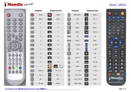 Below, we will show you the correspondence between each button on the original remote control and the button that performs the same function on the replacement remote control. In some cases, you may need to press the SHIFT key before pressing another button to perform certain actions. These additional functions are often not widely used and are included to facilitate understanding of the replacement remote control, or because the original remote control has more buttons than its equivalent.