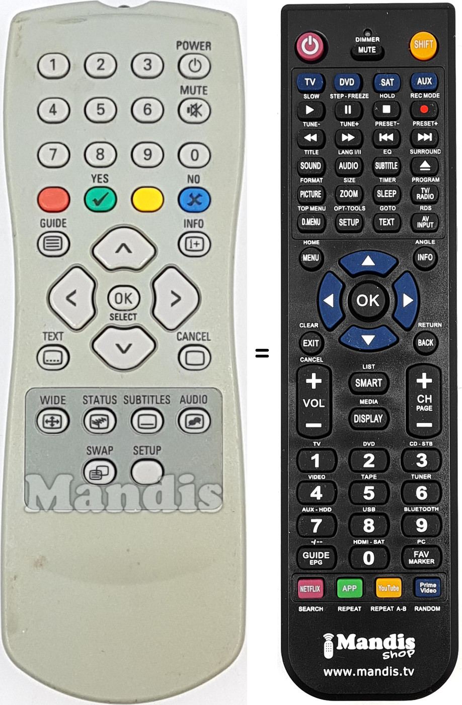 When we send the remote control, we also send a document with the correspondence of the keys between the replacement and the original remote controls which allows you to know how to perform the functions of the original remote. Sometimes it is available on the web so you can download it.