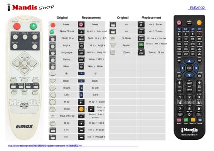 This remote control fully replaces your EMAX002 and offers all the functions of the original.