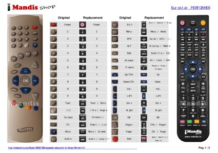 Below, we will show you the correspondence between each button on the original remote control and the button that performs the same function on the replacement remote control. In some cases, you may need to press the SHIFT key before pressing another button to perform certain actions. These additional functions are often not widely used and are included to facilitate understanding of the replacement remote control, or because the original remote control has more buttons than its equivalent.