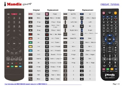 This remote control replaces most of the functions of your TSF 8500. It is not a universal remote control, but a copy with most of the buttons and functions of your original.
