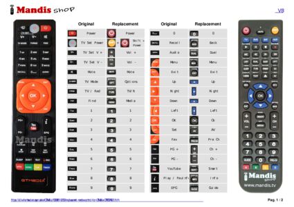 Below, we will show you the correspondence between each button on the original remote control and the button that performs the same function on the replacement remote control. In some cases, you may need to press the SHIFT key before pressing another button to perform certain actions. These additional functions are often not widely used and are included to facilitate understanding of the replacement remote control, or because the original remote control has more buttons than its equivalent.
