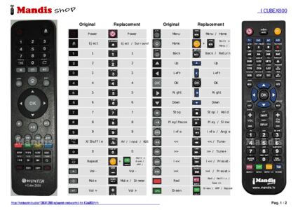 Below, we will show you the correspondence between each button on the original remote control and the button that performs the same function on the replacement remote control. In some cases, you may need to press the SHIFT key before pressing another button to perform certain actions. These additional functions are often not widely used and are included to facilitate understanding of the replacement remote control, or because the original remote control has more buttons than its equivalent.