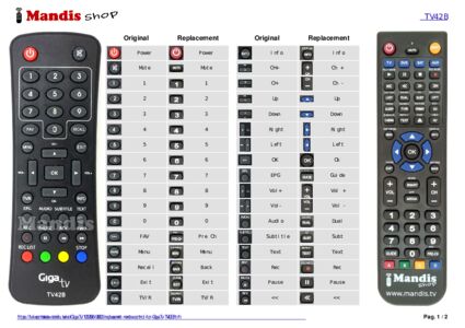 This remote control fully replaces your TV42B and offers all the functions of the original.