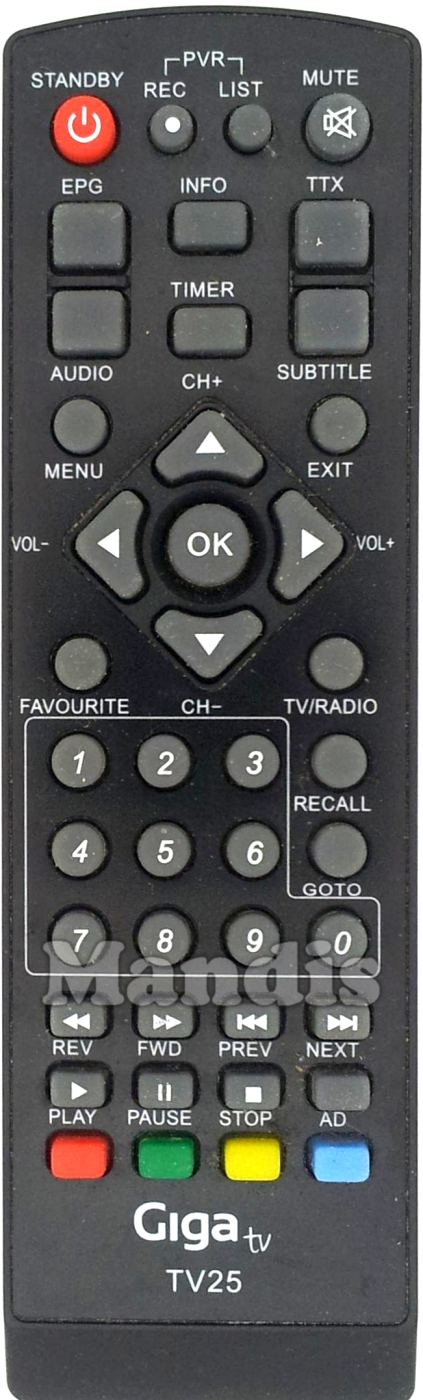 original remote control TV25 used for tdt/sat for the brand Giga Tv. This is an original remote control.