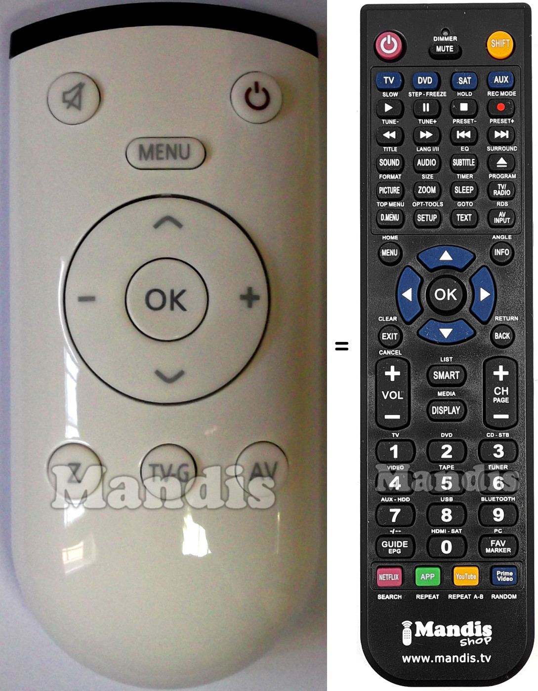 Below, we will show you the correspondence between each button on the original remote control and the button that performs the same function on the replacement remote control. In some cases, you may need to press the SHIFT key before pressing another button to perform certain actions. These additional functions are often not widely used and are included to facilitate understanding of the replacement remote control, or because the original remote control has more buttons than its equivalent.
