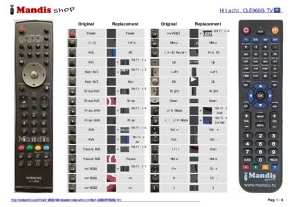 Below, we will show you the correspondence between each button on the original remote control and the button that performs the same function on the replacement remote control. In some cases, you may need to press the SHIFT key before pressing another button to perform certain actions. These additional functions are often not widely used and are included to facilitate understanding of the replacement remote control, or because the original remote control has more buttons than its equivalent.
