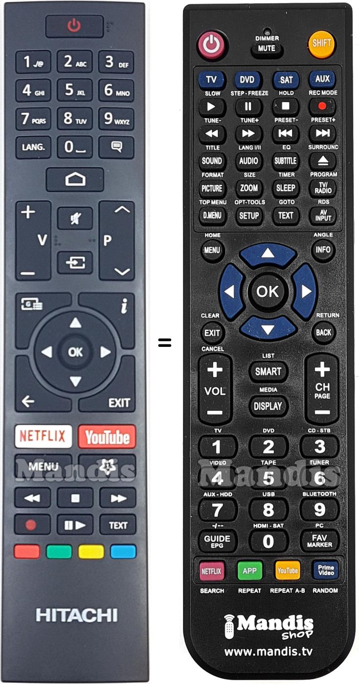 Below, we will show you the correspondence between each button on the original remote control and the button that performs the same function on the replacement remote control. In some cases, you may need to press the SHIFT key before pressing another button to perform certain actions. These additional functions are often not widely used and are included to facilitate understanding of the replacement remote control, or because the original remote control has more buttons than its equivalent.