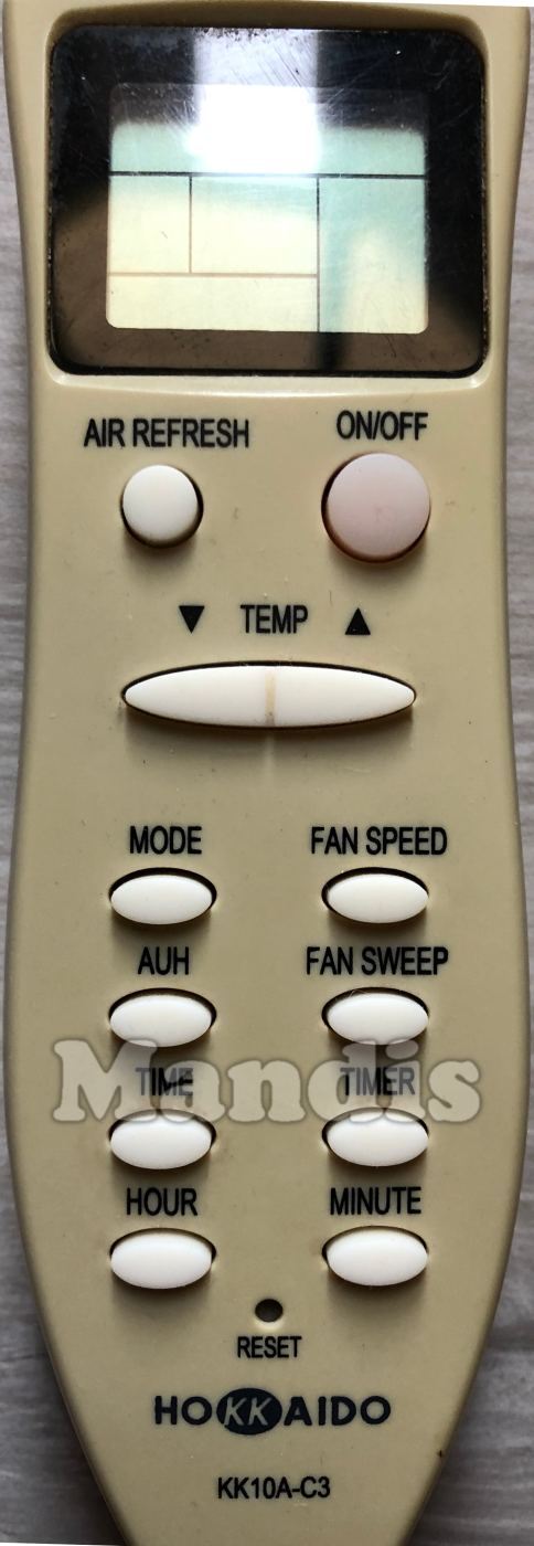 original remote control KK10A-C3 used for air conditioners for the brand Hokkaido. This is an original remote control.