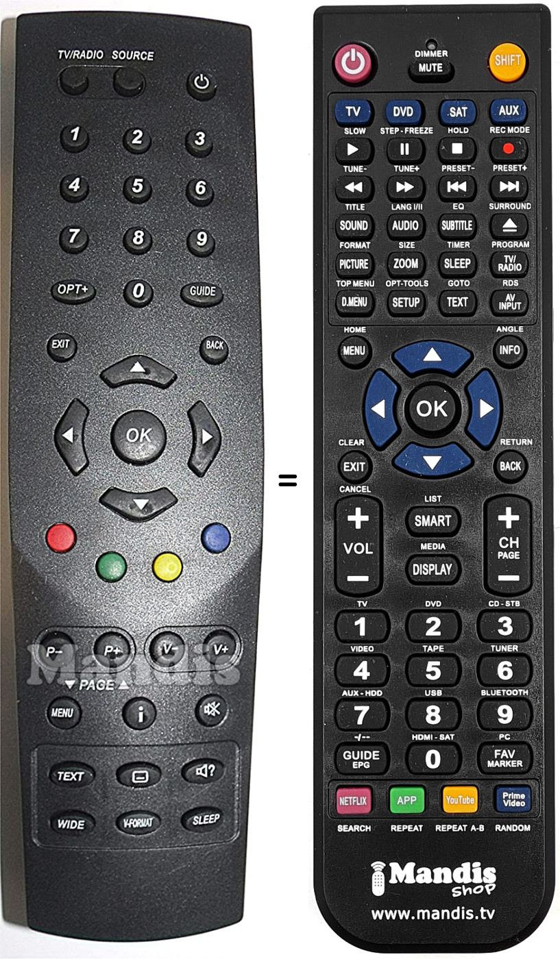 Remote control to replace the original and all its functions.