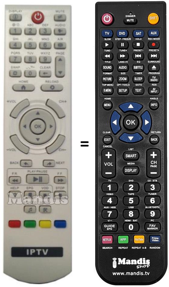 Remote control to replace the original and all its functions.