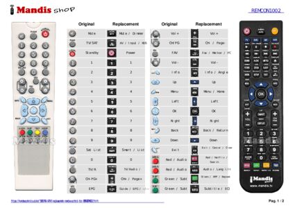 A document is included to help you use the new remote control easily, showing the button correspondence.