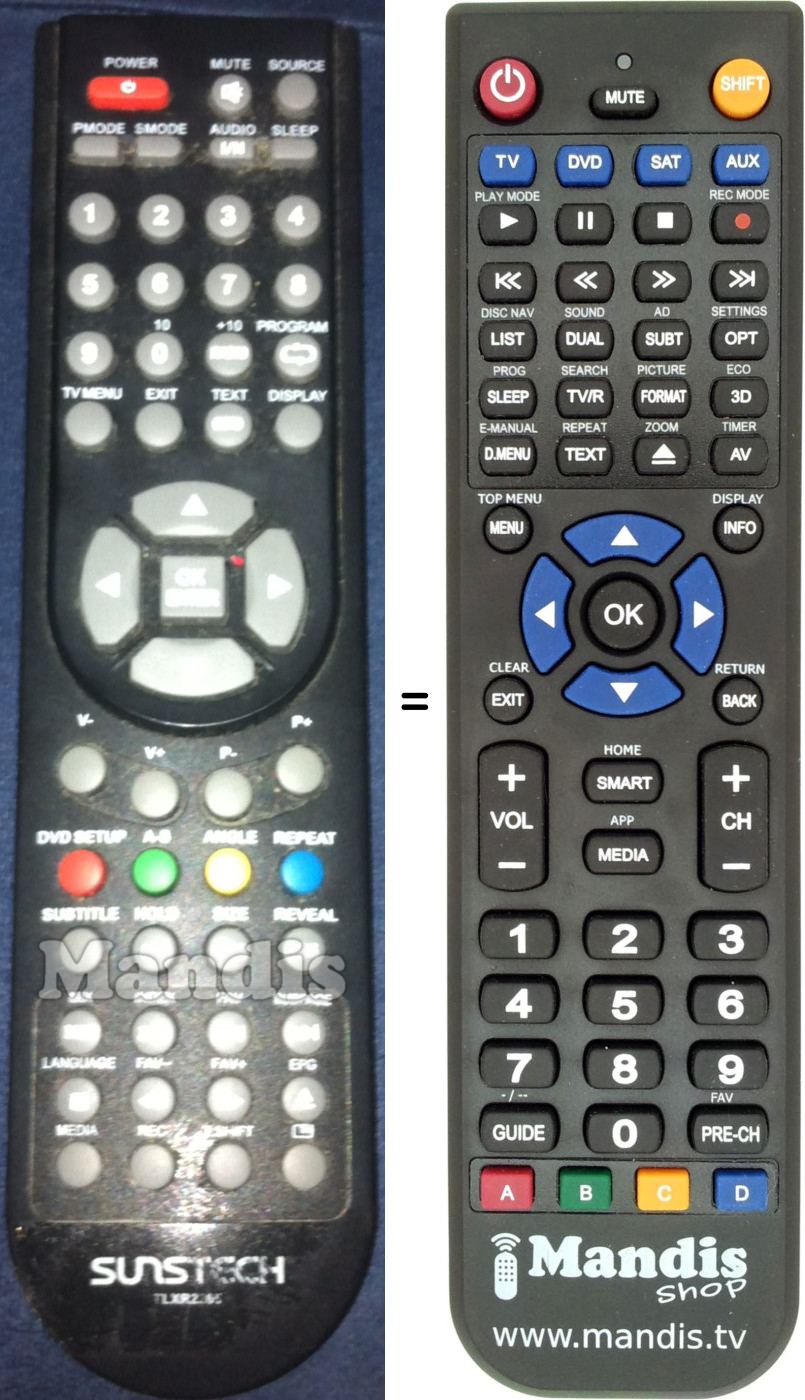 This remote control fully replaces your TLXR2265 and offers all the functions of the original.