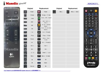 Below, we will show you the correspondence between each button on the original remote control and the button that performs the same function on the replacement remote control. In some cases, you may need to press the SHIFT key before pressing another button to perform certain actions. These additional functions are often not widely used and are included to facilitate understanding of the replacement remote control, or because the original remote control has more buttons than its equivalent.