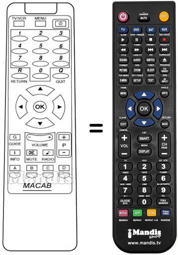 Remote control to replace the original and all its functions.