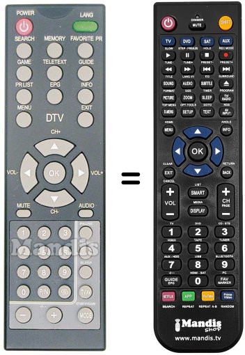 A document is included to help you use the new remote control easily, showing the button correspondence.