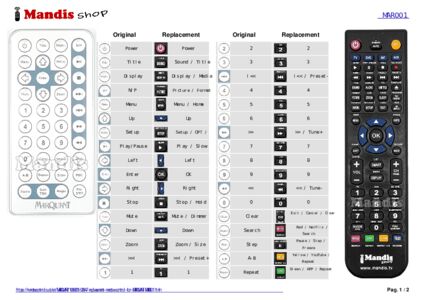 Below, we will show you the correspondence between each button on the original remote control and the button that performs the same function on the replacement remote control. In some cases, you may need to press the SHIFT key before pressing another button to perform certain actions. These additional functions are often not widely used and are included to facilitate understanding of the replacement remote control, or because the original remote control has more buttons than its equivalent.