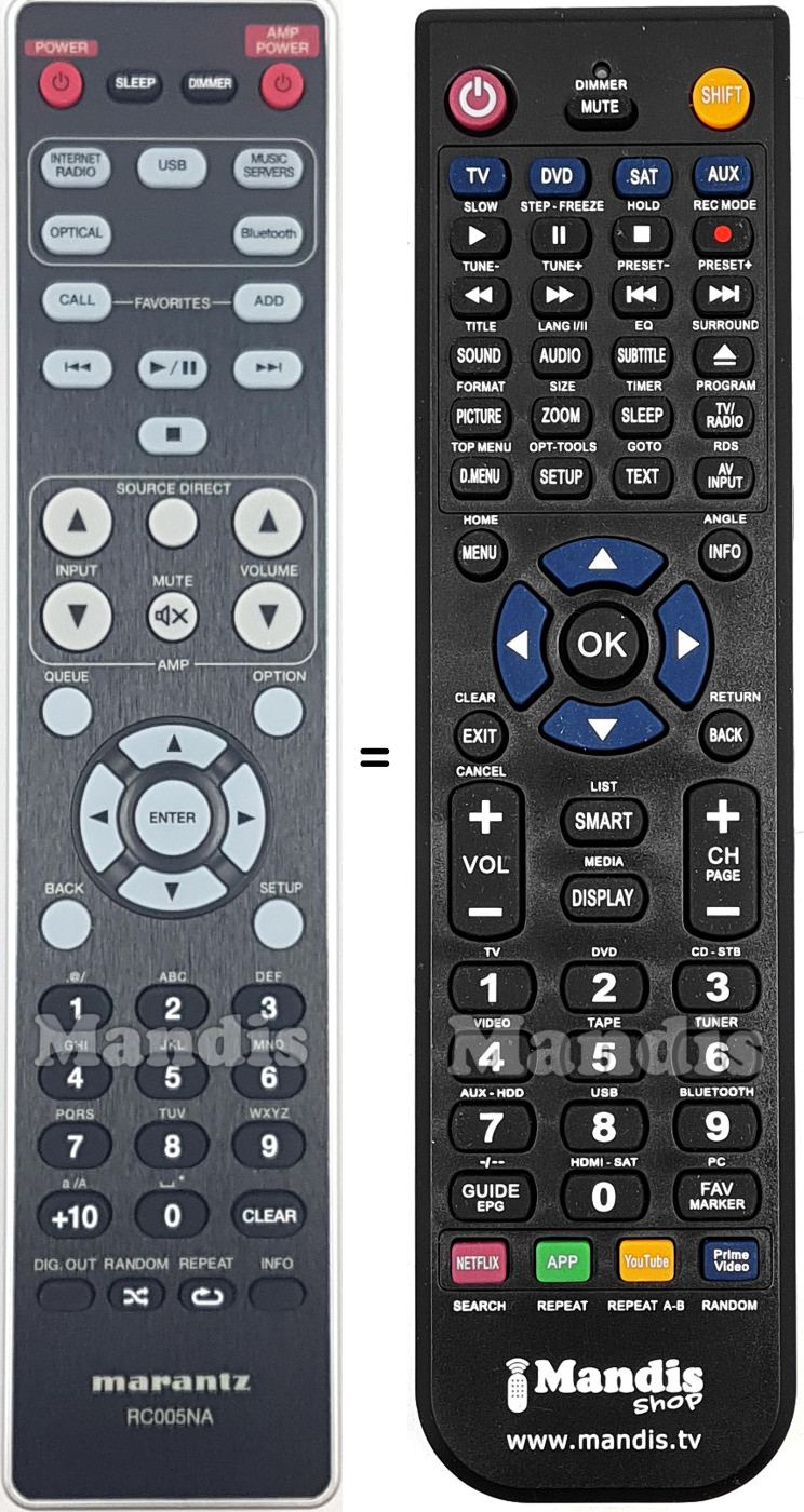 This remote control fully replaces your RC005NA (30701025800AM) and offers all the functions of the original.