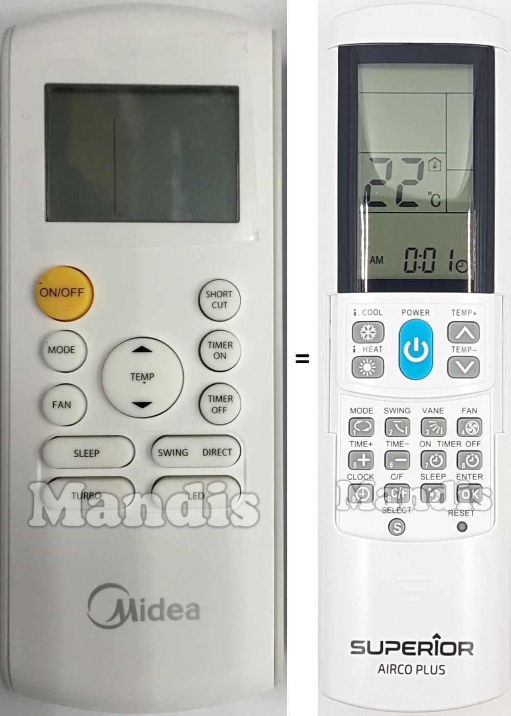 My LG air-conditioner's remote died and need replacement. AircoPlus did the job. I should point out that the code match did not correspond according to manufacturer's table. Let the auto-search code set up do the work. Also, excellent service by Mandis Remotes with a well-protected package.