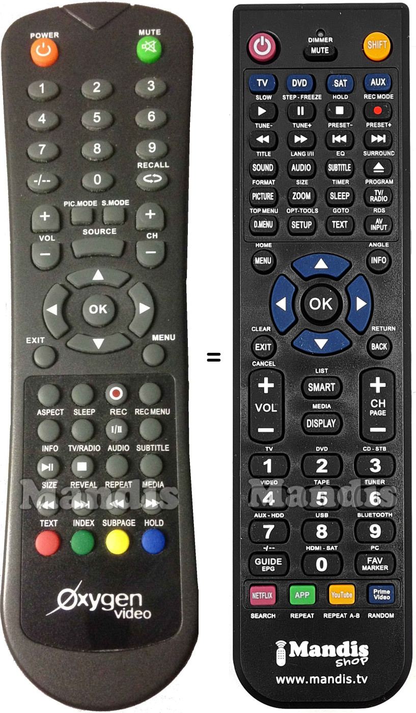 Below, we will show you the correspondence between each button on the original remote control and the button that performs the same function on the replacement remote control. In some cases, you may need to press the SHIFT key before pressing another button to perform certain actions. These additional functions are often not widely used and are included to facilitate understanding of the replacement remote control, or because the original remote control has more buttons than its equivalent.